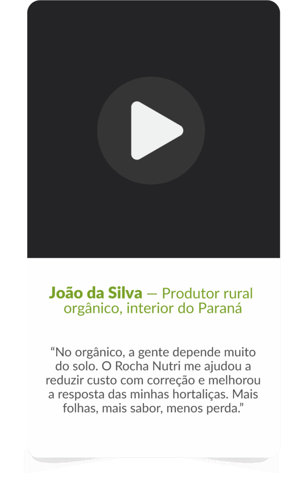 A busca por uma solução eficaz e natural me levou a anos de pesquisa e desenvolvimento, em parceria com importantes instituições como Unesp, USP, UFG e Unimar. O RochaNutri® nasceu dessa jornada e foi testado em campo, planta por planta.